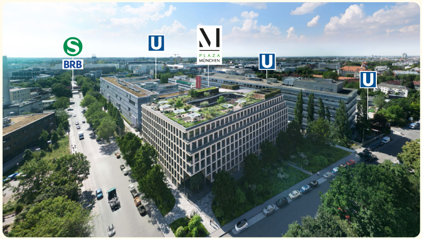 Das M-Plaza liegt im dynamisch wachsenden Stadtteil Thalkirchen, einem der spannendsten Entwicklungsgebiete Münchens. Hier trifft moderne Arbeitswelt auf urbanes Leben – mit einer perfekten Mischung aus Infrastruktur, Verkehrsanbindung und Freizeitmöglichkeiten. Die exzellente Erreichbarkeit mit dem ÖPNV sorgt sorgt für kurze Wege in die Innenstadt und zum Hauptbahnhof. In unmittelbarer Nähe befinden sich Geschäfte, Schulen und Restaurants, während Biergärten, Bars und weitläufige Grünflächen für Erholung sorgen. Diese Kombination aus urbaner Dynamik und natürlicher Umgebung schafft eine einzigartige Lebens- und Arbeitsqualität.